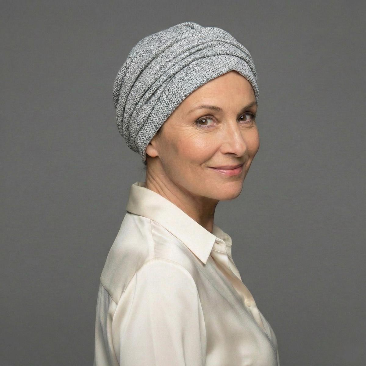 Optez pour un hiver sous le signe de la douceur avec le modèle Lila. Ce bonnet turban prêt-à-enfiler marie l'élégance d'une maille chinée à une doublure intégrale en bambou "effet seconde peau". Idéal pour les peaux réactives ou les frileuses exigeantes, il offre chaleur, volume naturel et un maintien parfait sans jamais serrer.