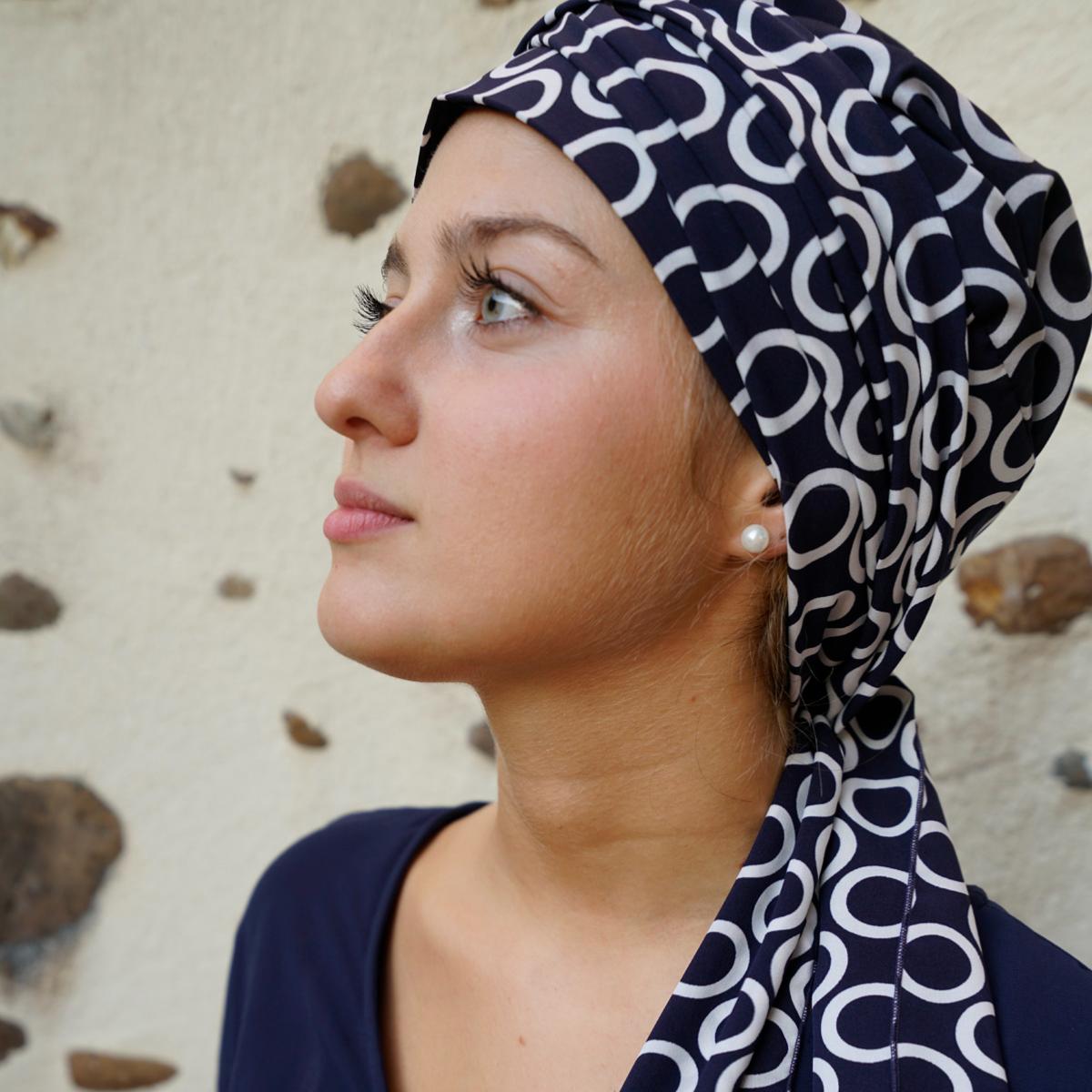 Le toucher de la soie, le confort du coton. Le modèle exclusif Georgia en viscose est un foulard préformé fluide et frais. Il s'enfile comme un simple bonnet tout en offrant un drapé élégant. Idéal pour apporter du volume, il garantit un maintien sécurisé et un confort absolu.