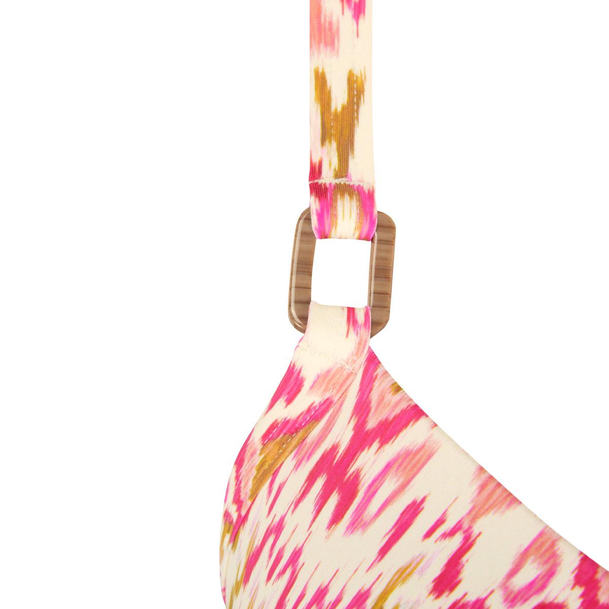 Le haut de bikini Istria SBP séduit par son imprimé "Modern Folk" et son décolleté drapé rehaussé d'une boucle effet bois. Ce modèle est paddé (coques en mousse) pour offrir un galbe arrondi et une silhouette parfaite. Il est particulièrement recommandé pour harmoniser la poitrine après une chirurgie conservatrice ou en cas d'asymétrie.