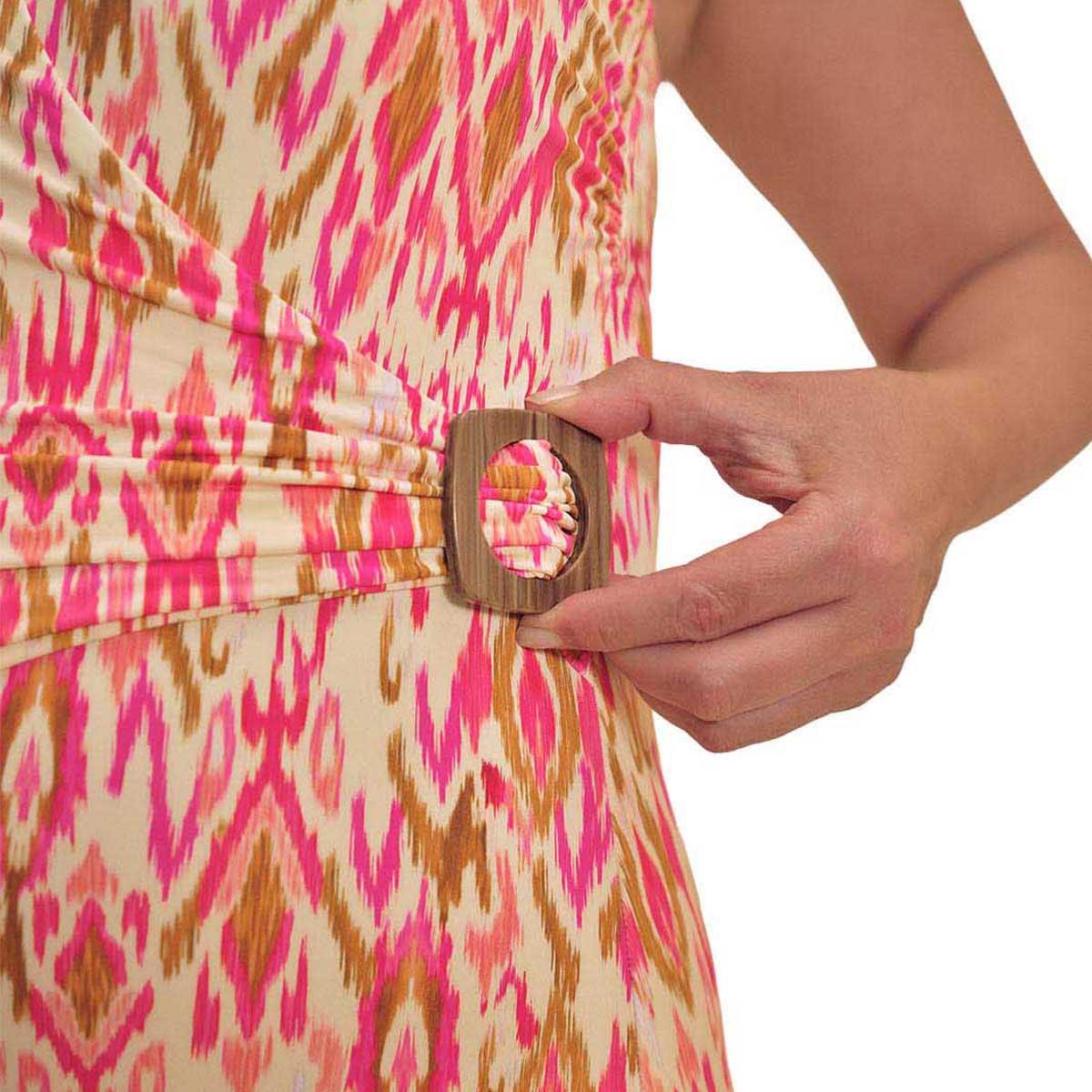 Le maillot une pièce Istria HB joue la carte du style "Modern Folk" avec un imprimé Ikat frais et dynamique. Son atout charme : une coupe forme cache-cœur à l'avant, retenue par une élégante boucle imitation bois. Doté d'un dos moyennement échancré, il offre un galbe moyen (Medium Shaping) et une protection solaire optimale (UV 50+).