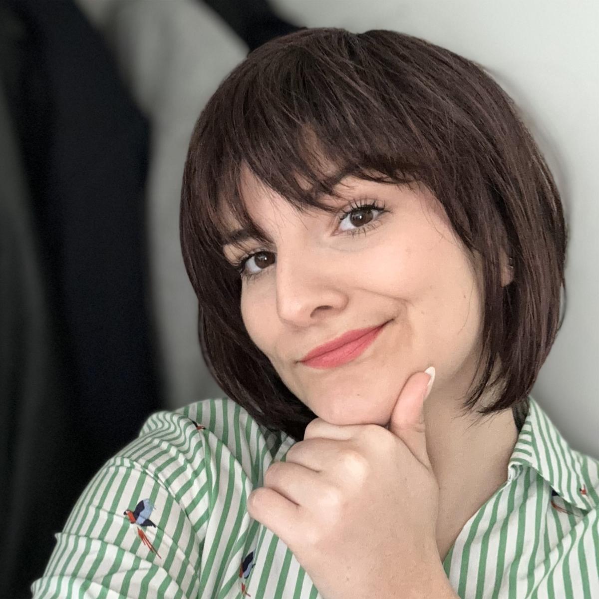 Les cheveux sont mi-longs et lisses. C’est un carré avec une frange dense qui donne du caractère à votre coupe.