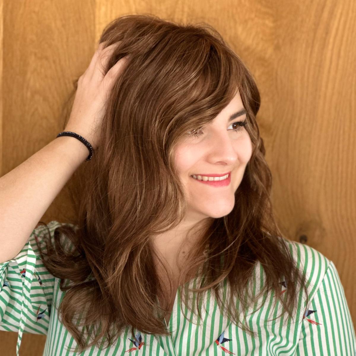 Très facile à mettre, cette perruque convient parfaitement aux personnes ayant subi une mastectomie ou un curage ganglionnaire axillaire car elle peut être mise et coiffée facilement.
