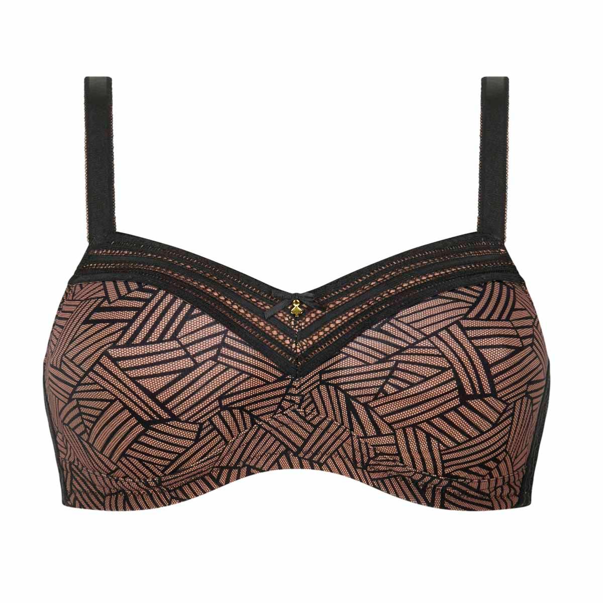 Nouveauté 2026/2027 : Le soutien-gorge Brooke séduit par son imprimé géométrique moderne Noir/Moka et son élégance. Ses bonnets moulés assurent une invisibilité parfaite sous les vêtements, tandis que ses renforts latéraux garantissent un maintien sûr.
