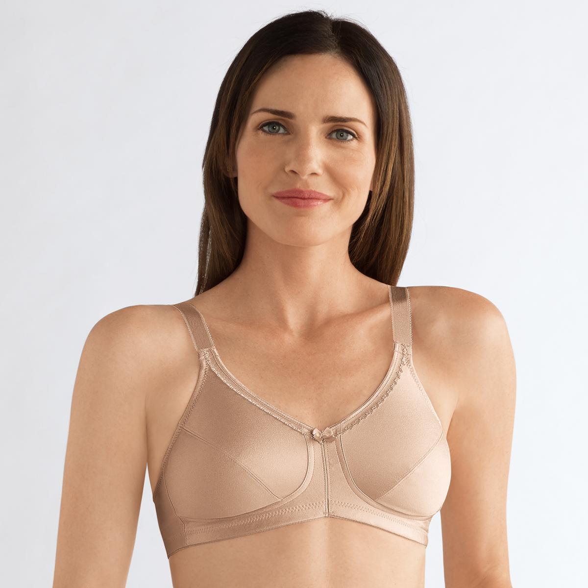 Le soutien-gorge Rita d'Amoena est un classique incontournable. Sans armatures, il offre un maintien parfait et une invisibilité totale sous les vêtements. Disponible en Noir, Blanc et Sable avec poches bilatérales.
