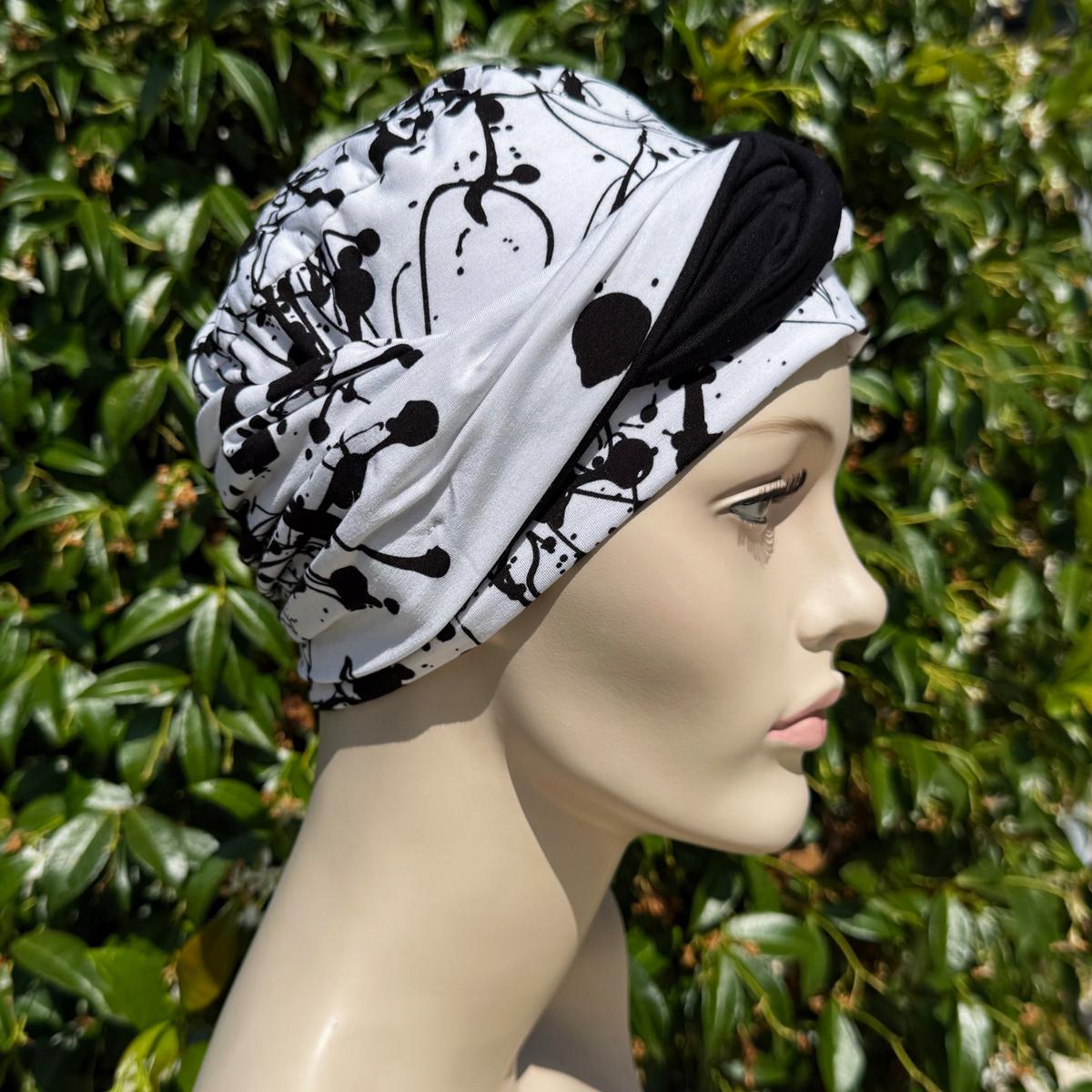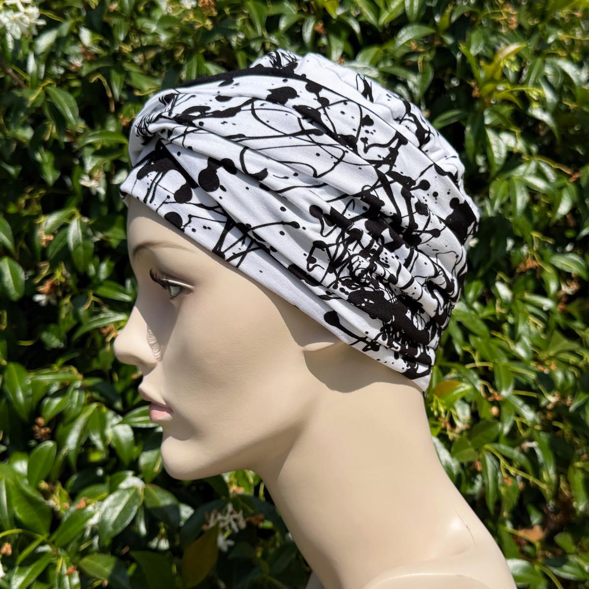 Très joli turban, bien fini et agréable à porter. Modèle doublé, à réserver pour les journées plutôt fraiches. J'avais un peu d'appréhension quant à la mention "taille unique" ayant plutôt une forte tête, mais le turban est bien extensible et me va parfaitement.